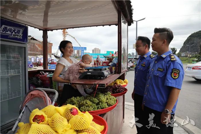 縣綜合執(zhí)法局隊員和攤主了解經(jīng)營情況