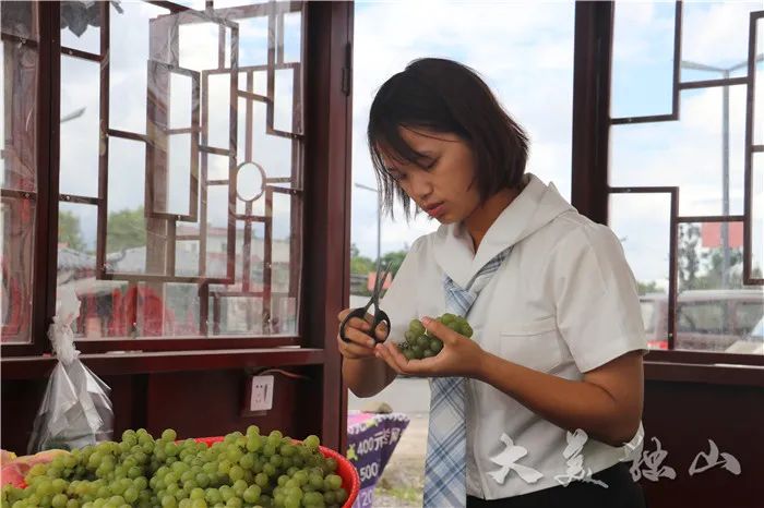 莫元露正在修剪水果