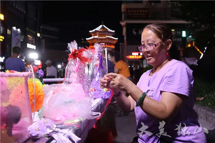 夜幕降臨,位于縣城中心的中南廣場亮起了五彩斑斕的燈光,人行道上,各個攤位擺放著形形色色的商品,市民們熙來攘往,在攤位前流連忘返,吆喝聲不絕于耳,整個夜晚變得格外熱鬧。