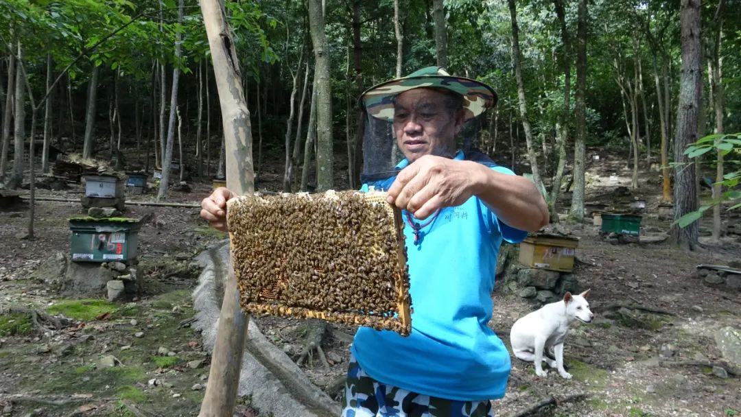 劉厚發(fā)還是年輕小伙時,由于翁臺一帶地理環(huán)境惡劣,來往交通極度不便,生產(chǎn)生活條件落后,大多人家都在溫飽線上苦苦掙扎。成家后,劉厚發(fā)有了一兒一女,那苦日子過得更是艱難。窮則思變,最終,劉厚發(fā)和妻子于1989年選擇外出打工謀生,算是當(dāng)?shù)剌^早走出山門尋求發(fā)展的人。這一出山就是二十來年,在兩廣一帶,劉厚發(fā)夫妻先是在一家種植場里做了幾年的花木種植,后來輾轉(zhuǎn)到一家養(yǎng)殖場里做養(yǎng)殖管理。這二十年里,雖然艱辛備至,家里依然貧困,但總算有了點收入,支撐著一兒一女順利完成了學(xué)業(yè),并先后考取了學(xué)校,擁有了一份穩(wěn)定的工作和生活,徹底改變了這個家庭的命運(yùn)。同時,劉厚發(fā)利用在養(yǎng)殖場打工的機(jī)會,留心向場里的養(yǎng)蜂人學(xué)習(xí)現(xiàn)代養(yǎng)蜂技術(shù)。小時候就對翁臺一帶傳統(tǒng)養(yǎng)蜂模式有所了解的劉厚發(fā),憑著勤于鉆研和刻苦學(xué)習(xí),幾年下來逐漸掌握了不少關(guān)于蜜蜂養(yǎng)殖的關(guān)鍵要領(lǐng)。2008年,已經(jīng)50來歲的劉厚發(fā)夫婦決心結(jié)束漂泊不定的打工生活,打算憑借學(xué)到的養(yǎng)蜂技術(shù)回鄉(xiāng)創(chuàng)業(yè),利用翁臺一帶得天獨厚的自然環(huán)境優(yōu)勢發(fā)展蜜蜂養(yǎng)殖。2009年,劉厚發(fā)建起了養(yǎng)殖場,他從原始森林里收集到的20窩土蜂開始,經(jīng)過三年多努力培育,迅速發(fā)展到了200來箱的養(yǎng)殖規(guī)模,土蜜生意做得“蜂”生水起,產(chǎn)品遠(yuǎn)銷北京、上海、深圳等一線城市。最近兩年,養(yǎng)殖場又由一個變成了兩個,收入更加穩(wěn)定,一家人的生活過得豐盈而安穩(wěn),迎來了一路“蜂”華的甜美日子。看著林間飛舞的一只只小蜜蜂,劉厚發(fā)頗為動情地說:“感謝這些可愛的小精靈,讓我一家過上了好日子!”