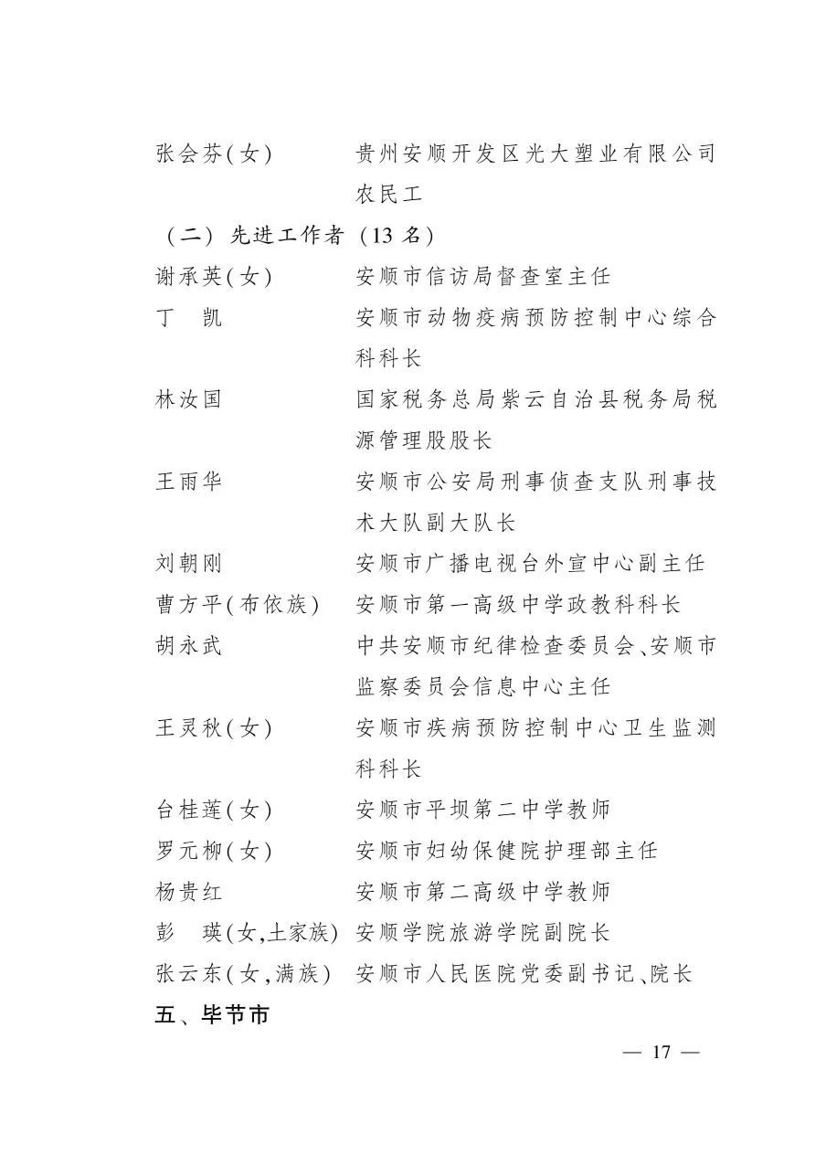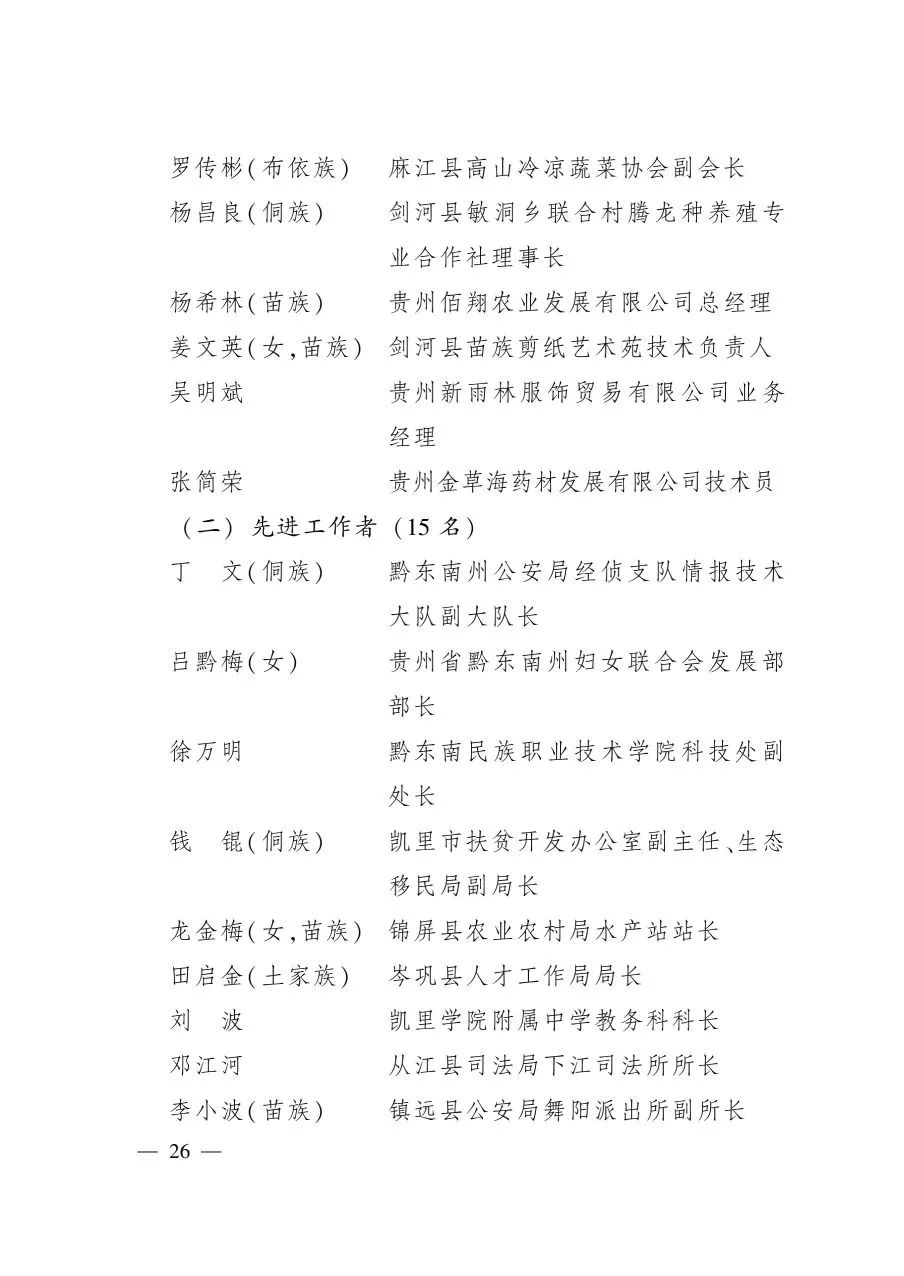 2015年全省勞動模范和先進工作者表彰大會召開以來,全省各族人民在省委、省政府的堅強領(lǐng)導(dǎo)下,堅持以習(xí)近平新時代中國特色社會主義思想為指導(dǎo),全面貫徹黨的十九大和習(xí)近平總書記對貴州工作系列重要指示精神,樹牢“四個意識”,堅定“四個自信”,做到“兩個維護”,全力打好三大攻堅戰(zhàn),深入實施三大戰(zhàn)略行動,加快建設(shè)三大國家級試驗區(qū),為促進高質(zhì)量打贏脫貧攻堅戰(zhàn)和推動經(jīng)濟社會高質(zhì)量發(fā)展作出了積極貢獻,在今年新冠肺炎疫情斗爭中,為疫情防控取得重大成果作出了重要貢獻,各行各業(yè)、各條戰(zhàn)線涌現(xiàn)出一大批有情懷、有能力、有擔當?shù)南冗M模范人物,他們是時代的先鋒、人民的楷模。為表彰他們的突出貢獻,弘揚他們的精神品格,進一步激勵全省各族人民投身決戰(zhàn)脫貧攻堅、決勝同步小康和實現(xiàn)中華民族偉大復(fù)興的中國夢,省委、省政府決定,授予羅環(huán)宇等330人“貴州省勞動模范”榮譽稱號,授予黃艷等170人“貴州省先進工作者”榮譽稱號。