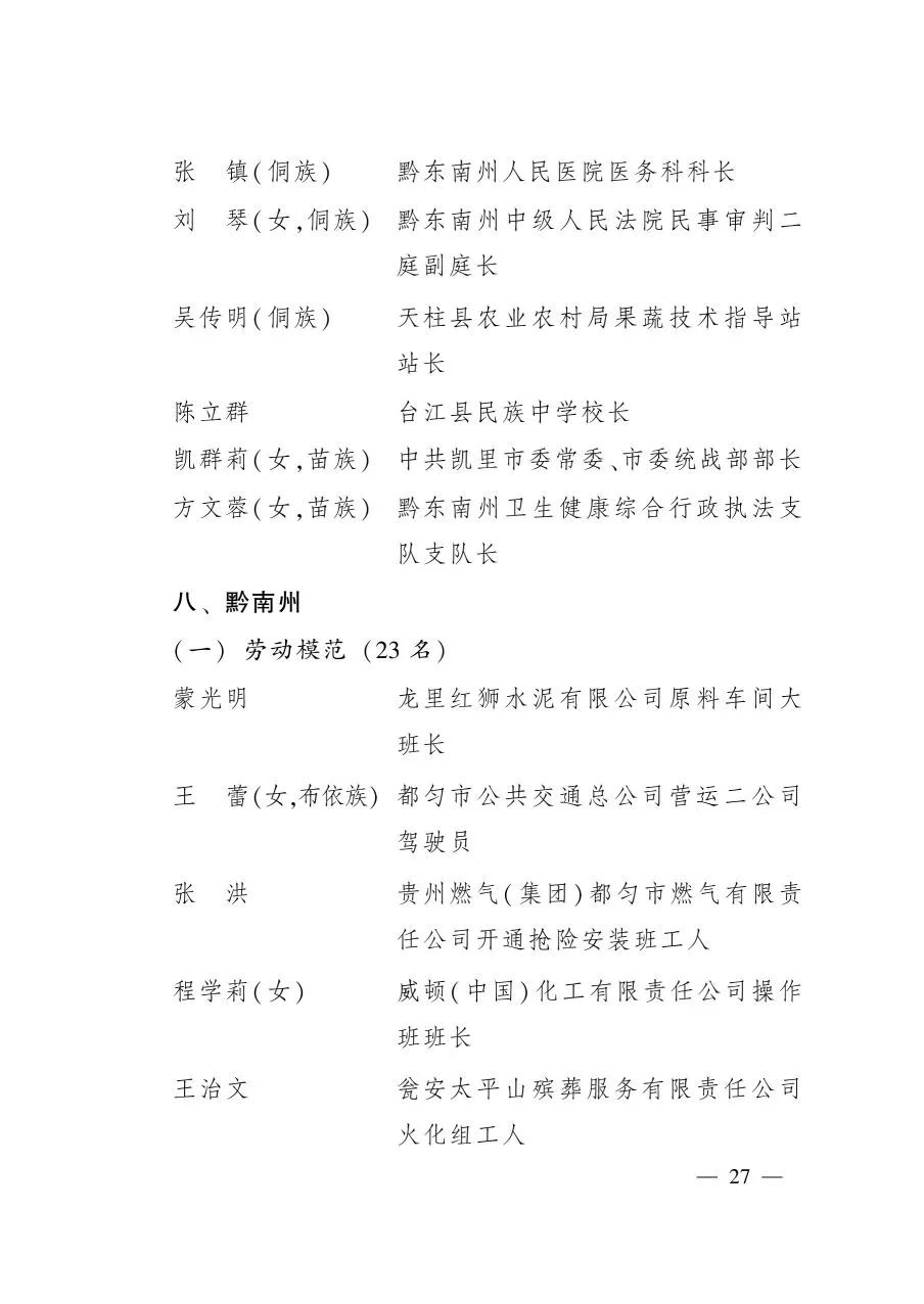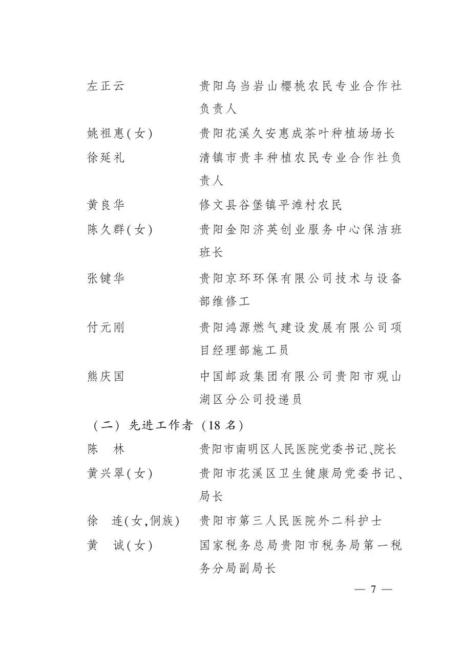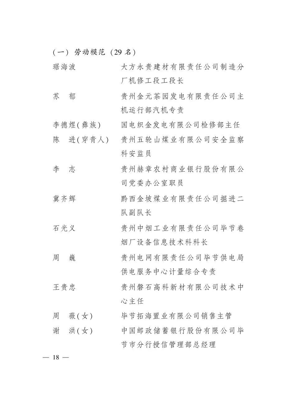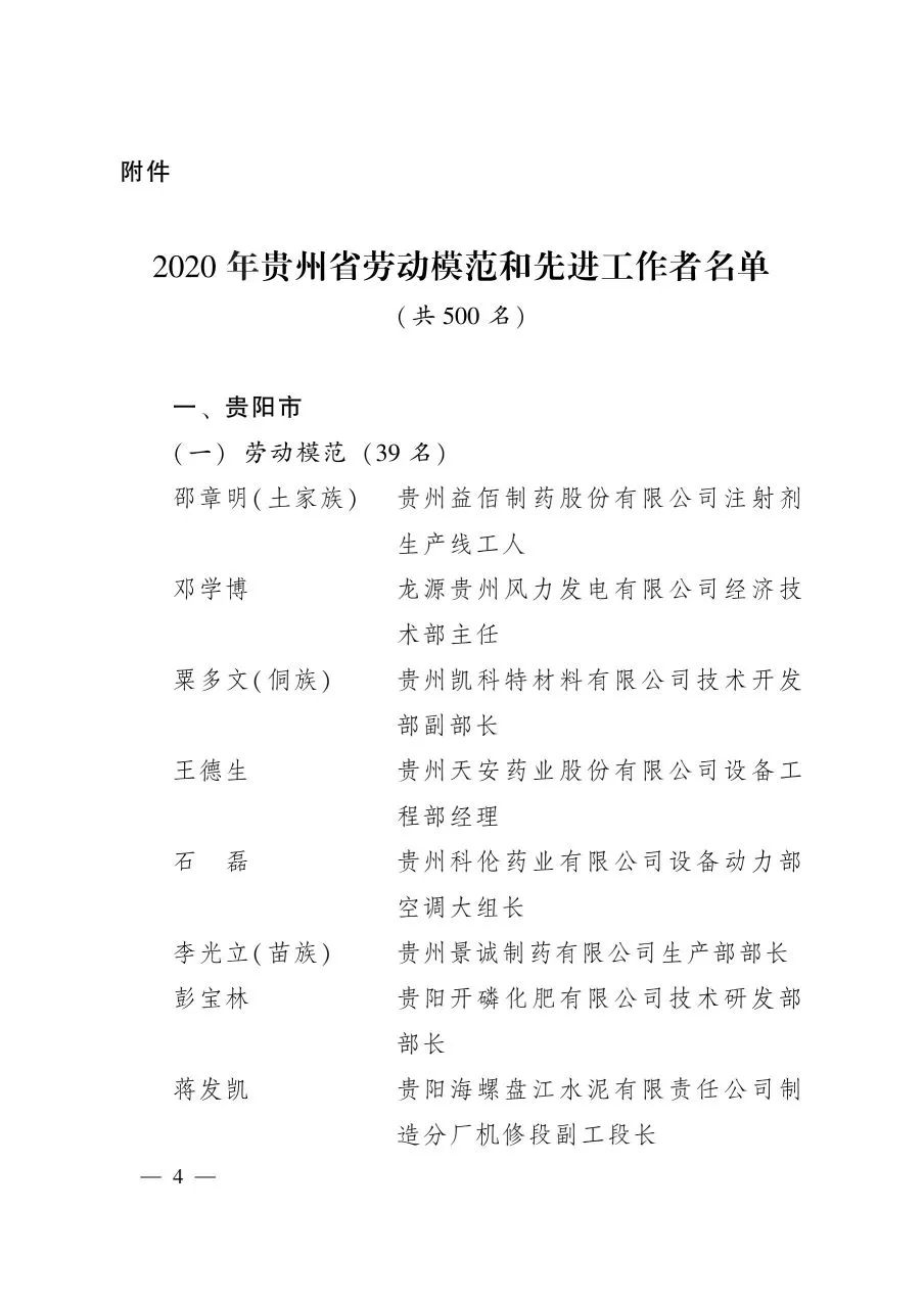 關(guān)于表彰2020年貴州省勞動模范和