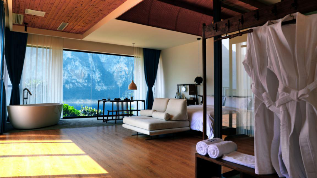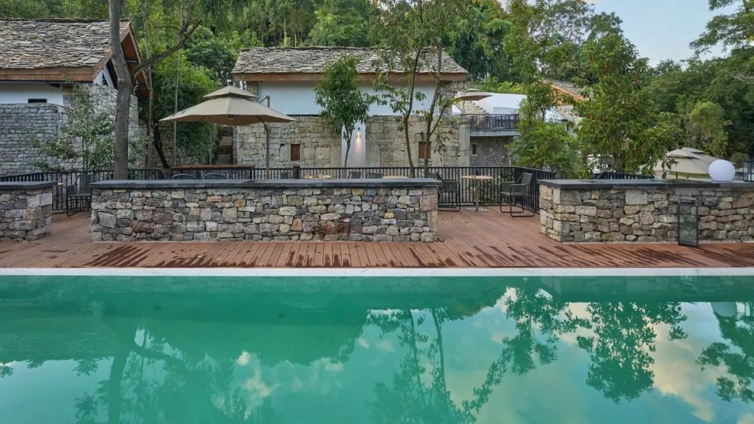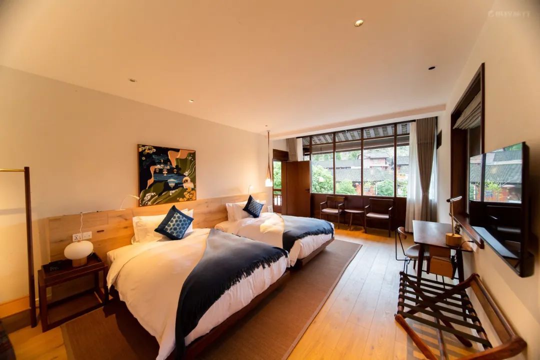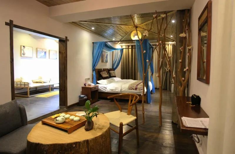 酒店依托于土家族傳統(tǒng)民居進(jìn)行舒適化改造升級(jí),將土家族建筑結(jié)構(gòu)完整保留,和周邊建筑風(fēng)貌融為一體,并加入一些蘇州特色的庭院景觀元素以獨(dú)立院落風(fēng)格呈現(xiàn)。