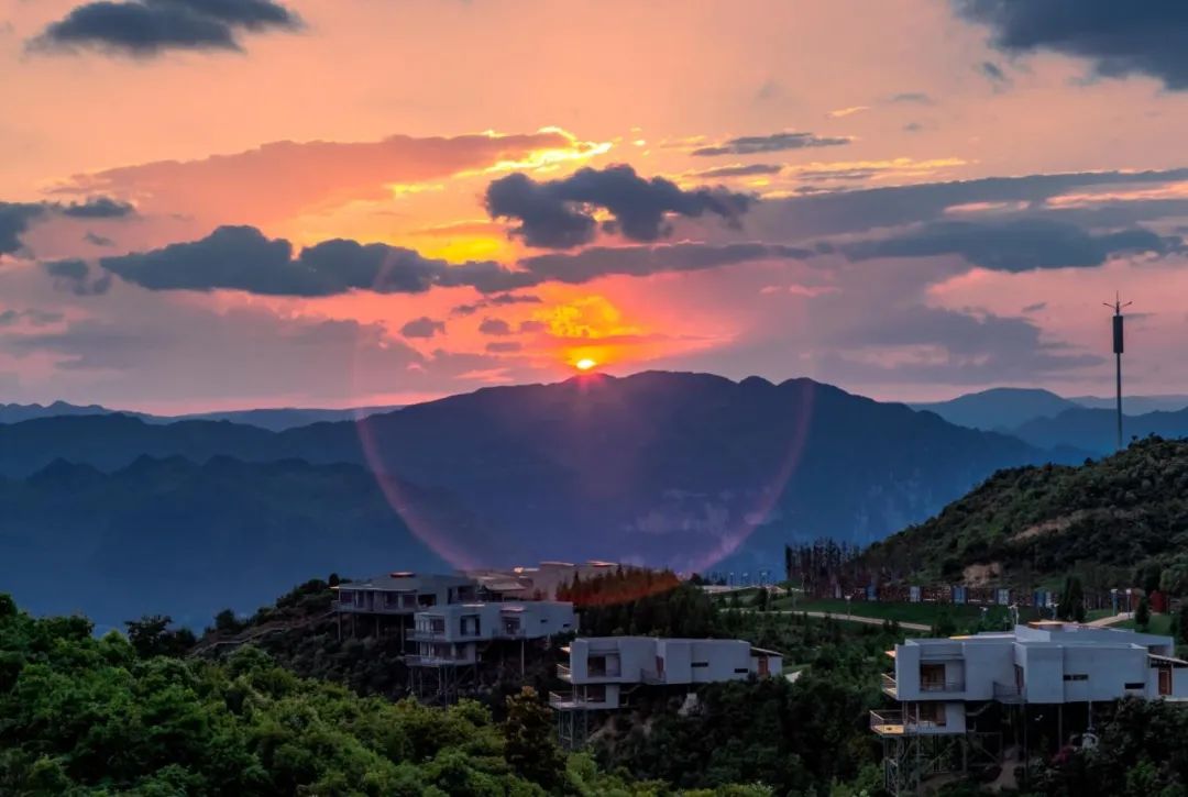 在黃果樹景區(qū)附近的蠻寨村,匠廬閱山精品民宿從云海中緩緩露出真容。它面朝峽谷,背枕青山,與壩陵河大橋遙遙相對(duì),連綿山脈,云海迷霧,在極致的景色中,匠廬閱山為人們描繪了一副水墨山色的清麗圖卷。