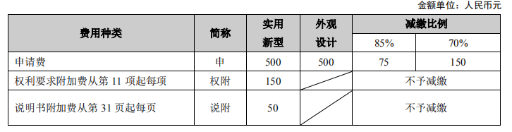 實用新型及外觀設(shè)計專利費用標(biāo)準(zhǔn)