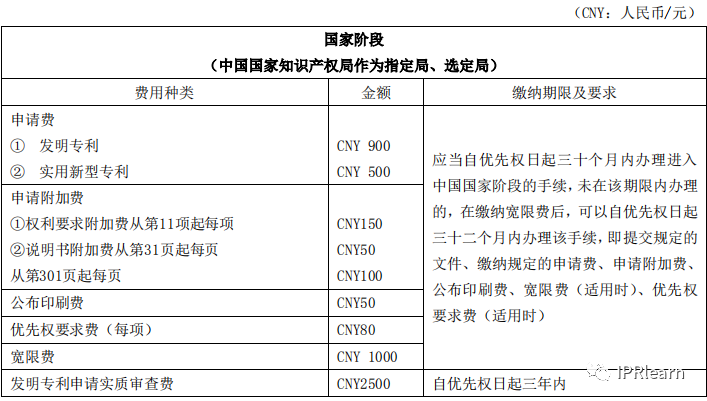 PCT 國際申請費用標(biāo)準(zhǔn)一覽表(國家階段)