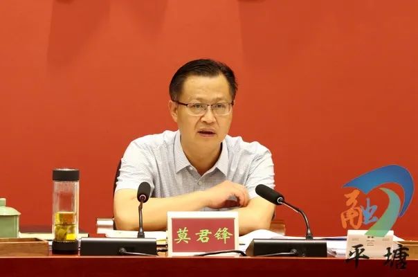 ▲縣委書記莫君鋒在會(huì)上作講話