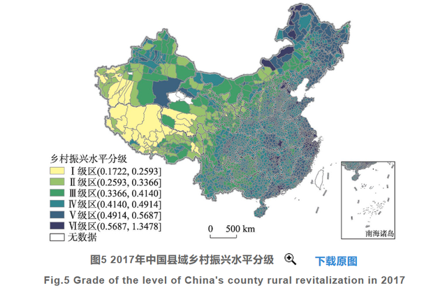 圖5 2017年中國縣域鄉(xiāng)村振興水平分級