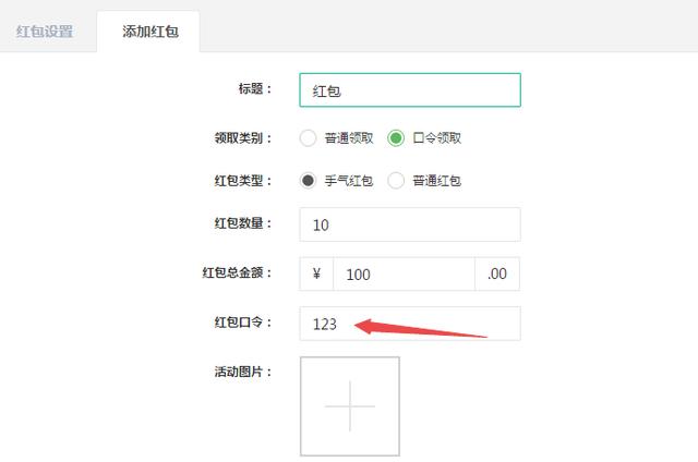 可以設置領取方式和紅包類型,可以設置普通領取和口令領取,紅包類型也可選擇設置。