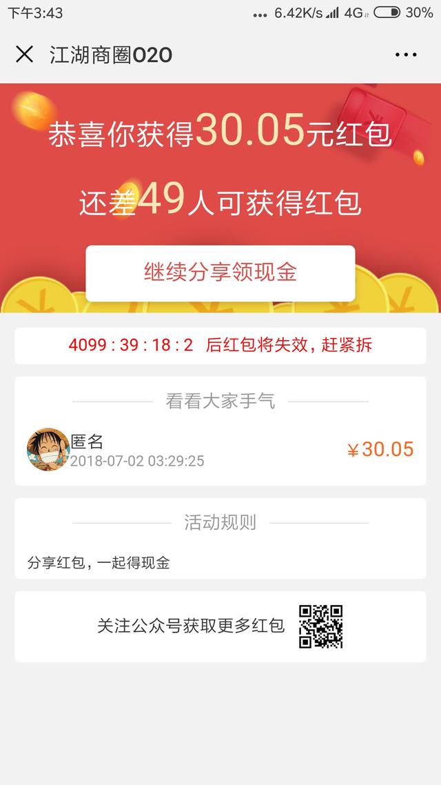 被分享者搶到紅包的畫面,會提示用戶輸入手機注冊領取紅包,也是拉新宣傳的一個好手段。