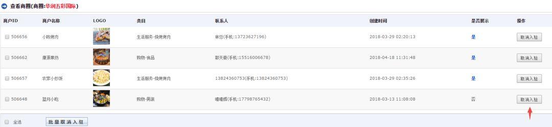 點擊查看可以查看商圈里的商戶,包括可以取消商戶的入駐。