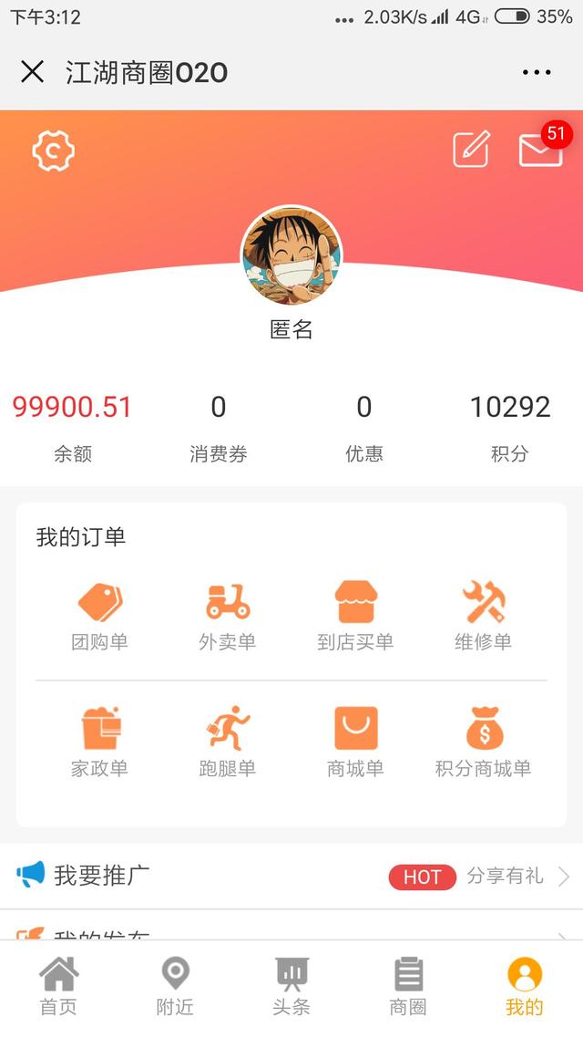 江湖商圈本周又有了重大更新,包括個人中心、同城商圈、商戶入駐、同城信息等方面都有了不小的改變,更新之后平臺和商家現(xiàn)在能夠有更多的營銷和營收手段,大家是不是迫切想知道更新內(nèi)容呢?一起來看看吧!(因我們只在合肥添加了測試數(shù)據(jù),為保證用戶體驗,若您進行測試體驗時請定位到合肥五彩國際,感謝合作)
