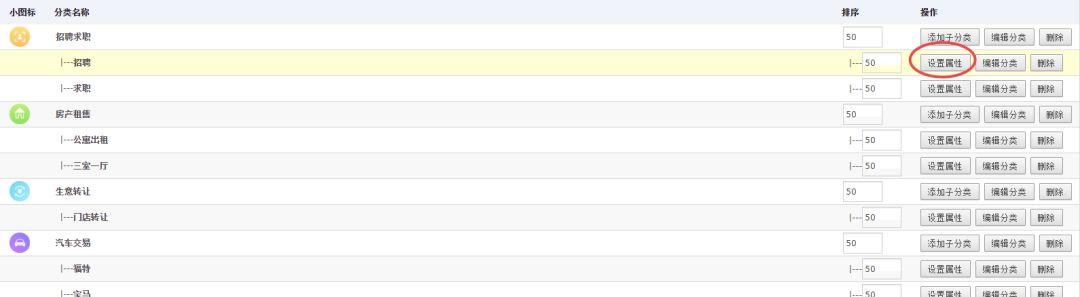 具體設置平臺運營者在后臺模塊→分類管理點擊設置屬性即可。