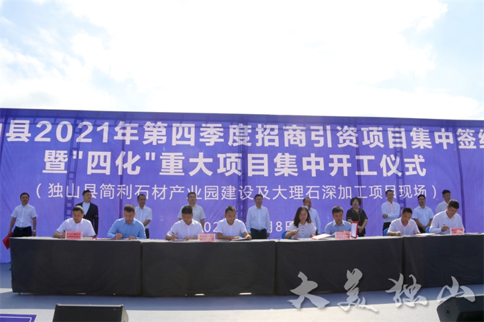 10月8日,獨(dú)山舉行第四季度招商引資項(xiàng)目集中簽約和“四化”重大項(xiàng)目集中開工儀式,縣委書記李景寬宣布獨(dú)山縣2021年第四季度“四化”重大項(xiàng)目集中開工;縣委副書記、縣長(zhǎng)王裕民致辭。