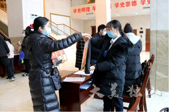??現(xiàn)場,在工作人員的指引下,政協(xié)委員們嚴格遵守疫情防控相關(guān)要求,自覺佩戴口罩,測量體溫、出示健康碼、填寫個人健康申報表等,并辦理報到手續(xù)、領(lǐng)取會議材料。在旁,報到完畢的委員們一邊互致問候,一邊就準備的提案進行交流,現(xiàn)場洋溢著濃濃的參政議政氛圍。
