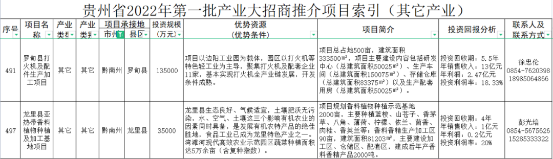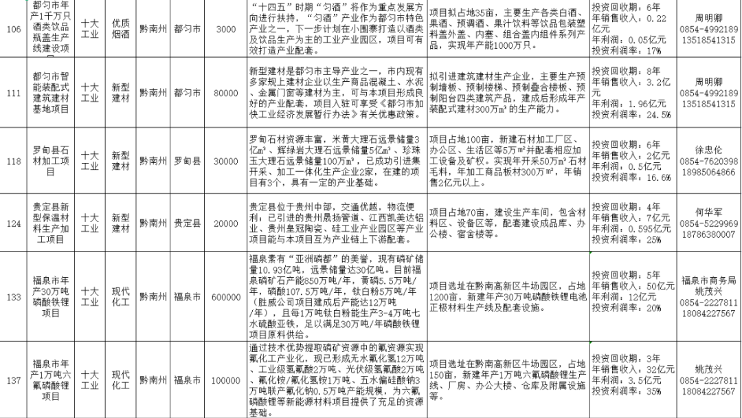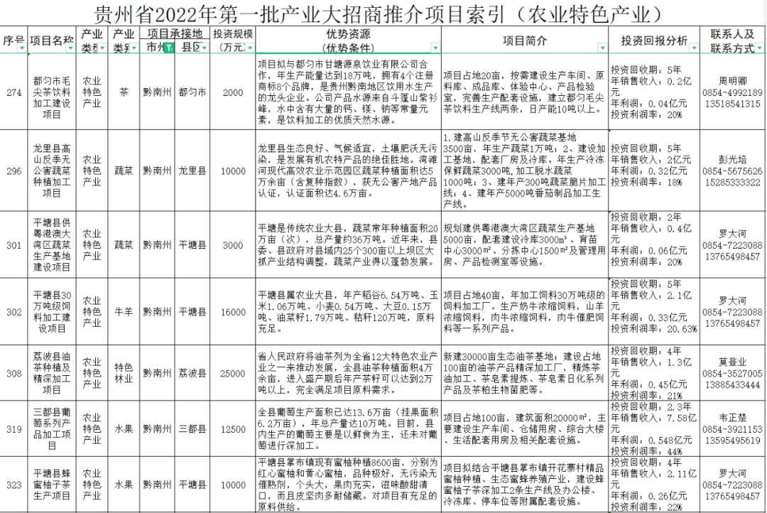 貴州省2022年第一批產(chǎn)業(yè)大招商推介項(xiàng)目(黔南部分)