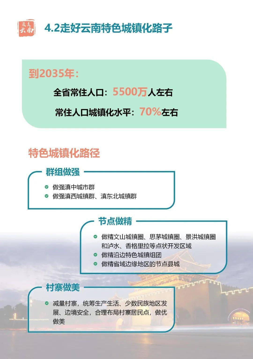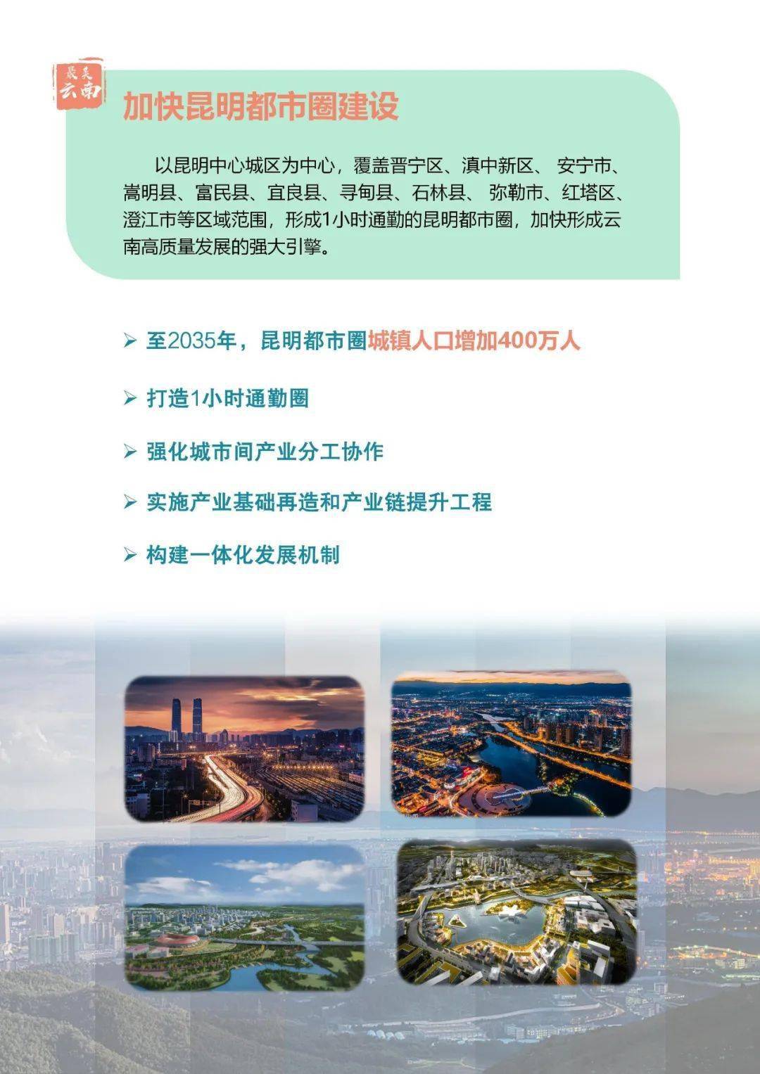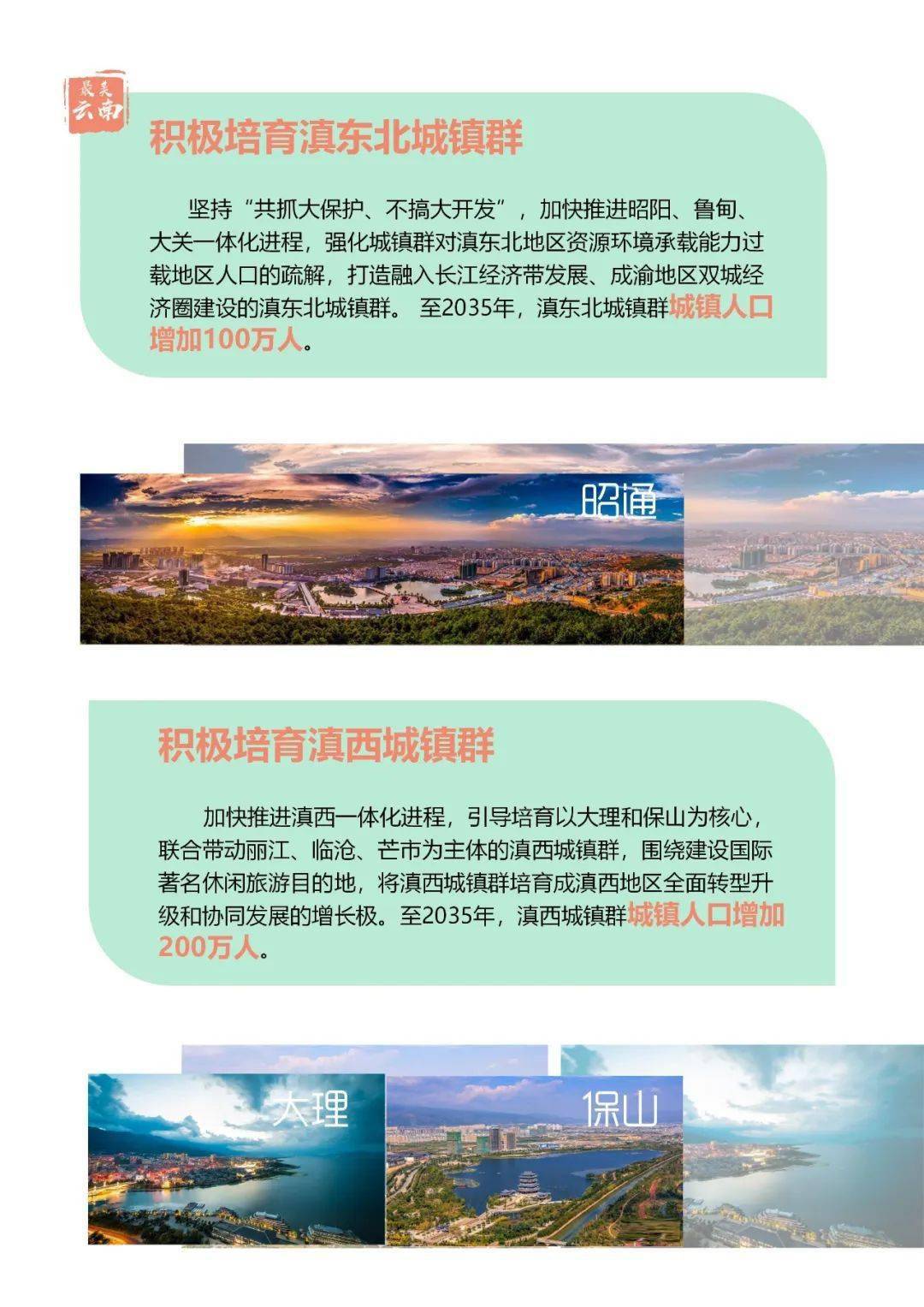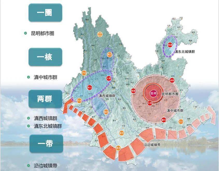 在城鎮(zhèn)化戰(zhàn)略布局上,根據(jù)云南省國土空間總體規(guī)劃,規(guī)劃到2035年,云南省常住人口將達到5500萬人,預計城鎮(zhèn)化率達70%左右;通過做強滇中城市群、打造昆明都市圈,發(fā)揮其核心支撐作用,規(guī)劃未來15年滇中城市群人口增加1000萬人。與此同時,云南將積極培育滇西和滇東北兩個城鎮(zhèn)群,建設沿邊開放城鎮(zhèn)帶。
