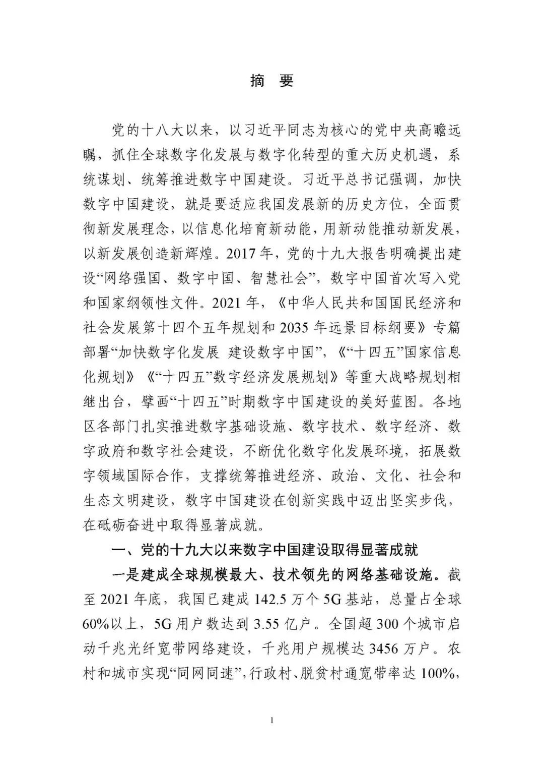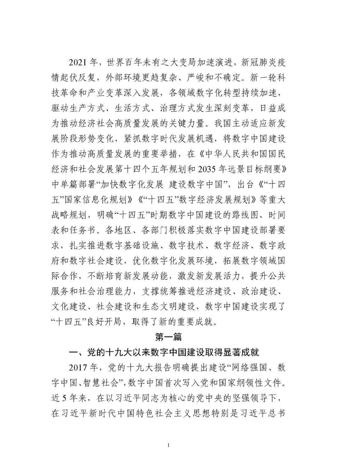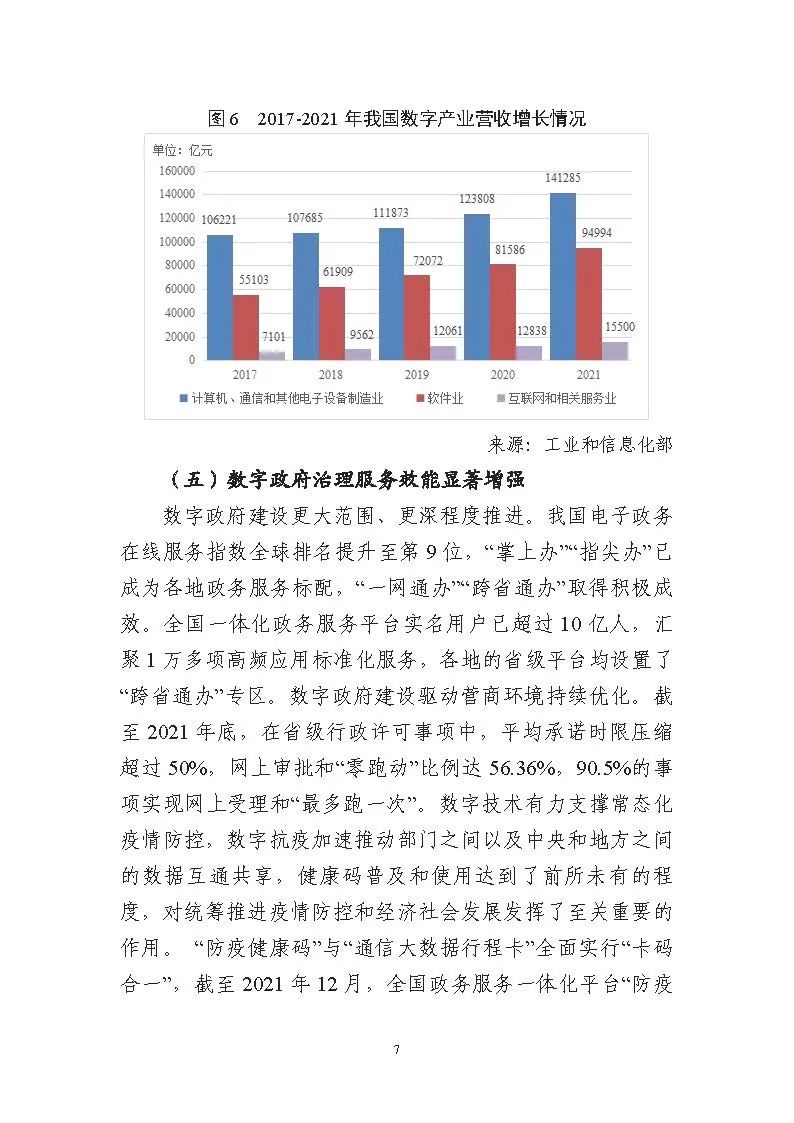 為貫徹落實(shí)黨中央、國(guó)務(wù)院關(guān)于建設(shè)數(shù)字中國(guó)的重要部署,深入實(shí)施《國(guó)家信息化發(fā)展戰(zhàn)略綱要》《“十四五”國(guó)家信息化規(guī)劃》等戰(zhàn)略規(guī)劃,國(guó)家互聯(lián)網(wǎng)信息辦公室會(huì)同有關(guān)方面跟蹤監(jiān)測(cè)各地區(qū)、各部門數(shù)字化發(fā)展情況,開展數(shù)字中國(guó)發(fā)展水平評(píng)估工作,編制完成《數(shù)字中國(guó)發(fā)展報(bào)告(2021年)》(以下簡(jiǎn)稱《報(bào)告》)?!秷?bào)告》總結(jié)了黨的十九大以來數(shù)字中國(guó)建設(shè)取得的顯著成就和2021年的重要進(jìn)展成效,評(píng)估了2021年各地區(qū)數(shù)字化發(fā)展水平,并對(duì)2022年數(shù)字中國(guó)建設(shè)進(jìn)行了展望?!秷?bào)告》全文如下: