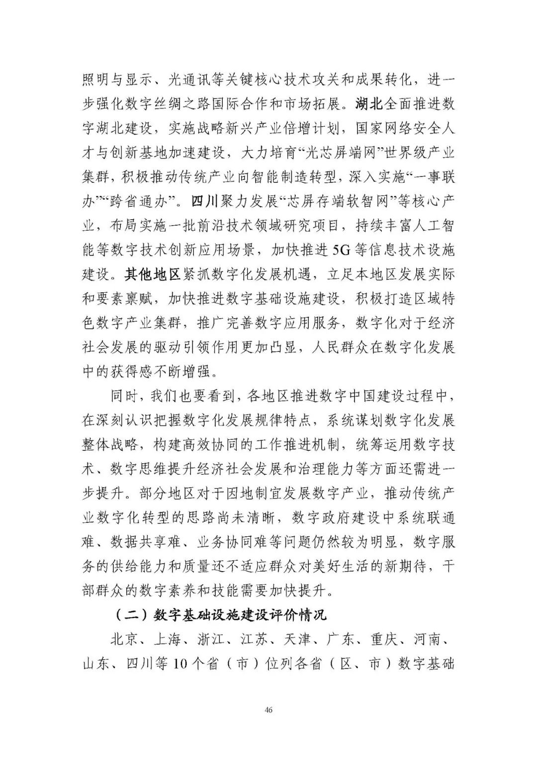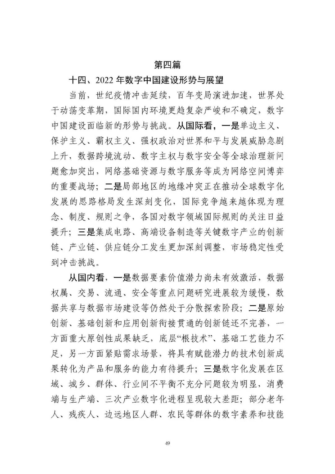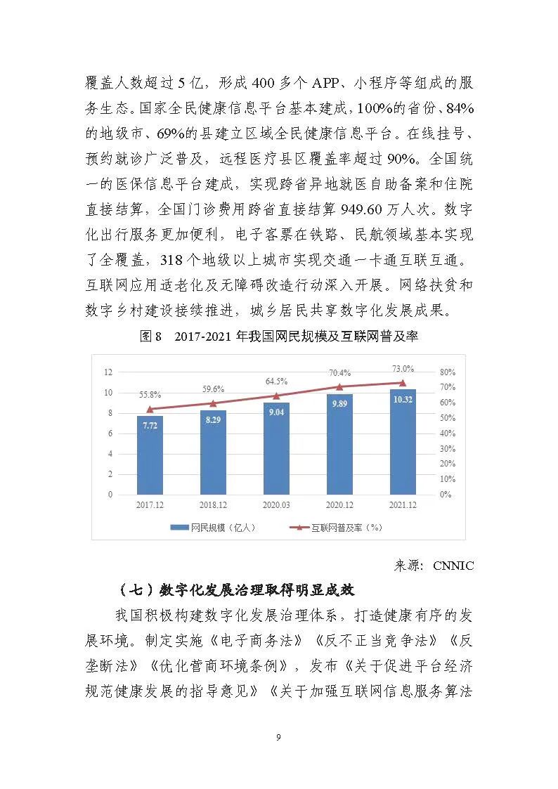 為貫徹落實(shí)黨中央、國(guó)務(wù)院關(guān)于建設(shè)數(shù)字中國(guó)的重要部署,深入實(shí)施《國(guó)家信息化發(fā)展戰(zhàn)略綱要》《“十四五”國(guó)家信息化規(guī)劃》等戰(zhàn)略規(guī)劃,國(guó)家互聯(lián)網(wǎng)信息辦公室會(huì)同有關(guān)方面跟蹤監(jiān)測(cè)各地區(qū)、各部門數(shù)字化發(fā)展情況,開展數(shù)字中國(guó)發(fā)展水平評(píng)估工作,編制完成《數(shù)字中國(guó)發(fā)展報(bào)告(2021年)》(以下簡(jiǎn)稱《報(bào)告》)?!秷?bào)告》總結(jié)了黨的十九大以來數(shù)字中國(guó)建設(shè)取得的顯著成就和2021年的重要進(jìn)展成效,評(píng)估了2021年各地區(qū)數(shù)字化發(fā)展水平,并對(duì)2022年數(shù)字中國(guó)建設(shè)進(jìn)行了展望?!秷?bào)告》全文如下: