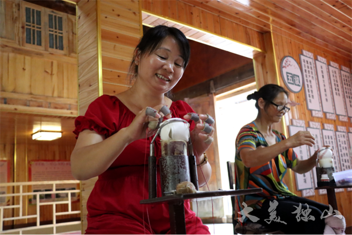 基長(zhǎng)鎮(zhèn)陽(yáng)地村下塘流組鄉(xiāng)村振興集成示范試點(diǎn),群眾進(jìn)行編織