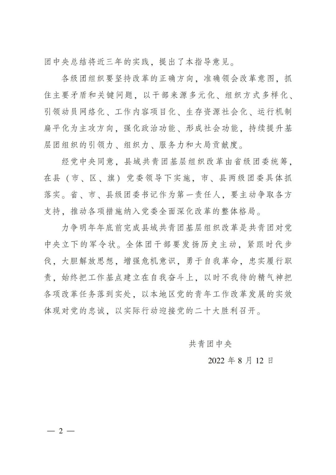 共青團(tuán)中央印發(fā)《關(guān)于推進(jìn)縣域共青團(tuán)基層組織改革的指導(dǎo)意見》