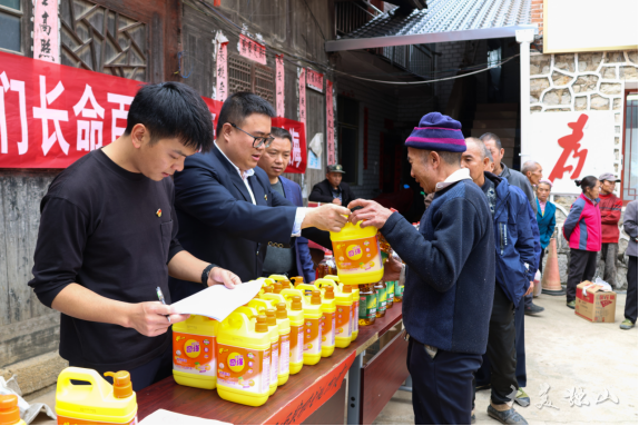 ??麻萬鎮(zhèn)三里村黨總支書記、村委會主任何孝剛告訴記者,今年得益于村集體經(jīng)濟(jì)的良好發(fā)展,該村從集體收入中取出一部分資金作為60歲以上老人的健康紅股,希望老人們能夠身體健康,享受政策帶來的紅利,“此次分紅活動共涉及全村512名60歲以上老年人,我們將現(xiàn)場發(fā)放每人食用油一桶、面條一袋,還將發(fā)放每人健康分紅100元?!焙涡傉f。