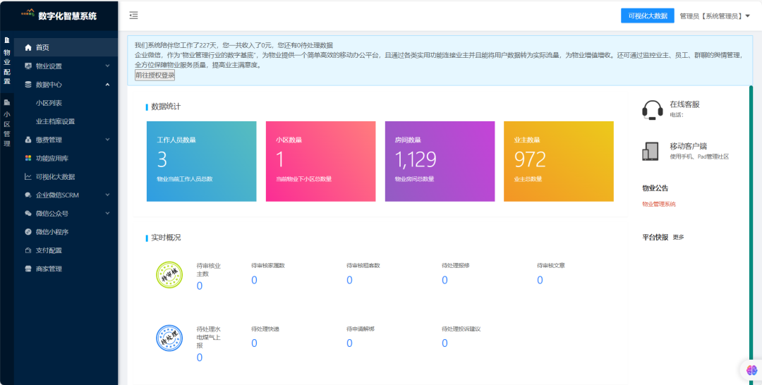 物管云智慧物業(yè)平臺集藍牙門禁、人臉識別門禁、智能停車、充電樁、快遞等硬件于一體,并融合抄表、在線報修、物料管理等物業(yè)服務功能。通過物業(yè)管家管理、微信小程序及公眾號等移動端,我們旨在減輕工程人員的巡檢和安防負擔,實現(xiàn)設備數(shù)據(jù)的自動獲取、遠程監(jiān)控。系統(tǒng)促進人機互動,使運行任務更加智能化、點檢化、工單化,構(gòu)建出安全、高效、便捷、智慧、節(jié)能的物業(yè)環(huán)境,營造宜業(yè)、宜商、宜居的和諧氛圍。