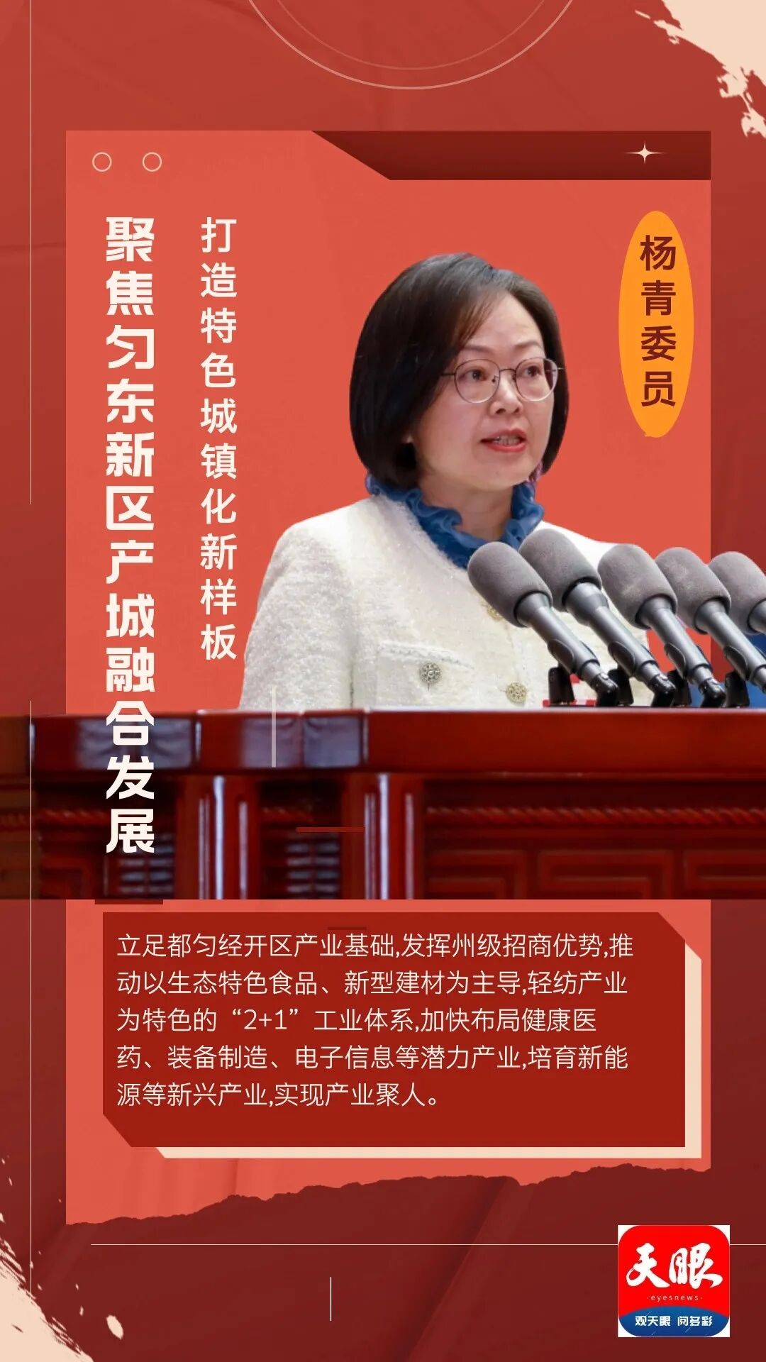 楊青認(rèn)為要緊扣黔南、都勻資源稟賦、區(qū)位條件及都勻市“特色產(chǎn)業(yè)縣”定位,加快由“城市建設(shè)區(qū)”向“產(chǎn)業(yè)功能區(qū)”轉(zhuǎn)變。重點(diǎn)打造都勻市杉木湖街道辦事處,杉木湖街道是貴州省都勻市勻東鎮(zhèn)新設(shè)立的街道,由都勻經(jīng)濟(jì)開(kāi)發(fā)區(qū)代管。該街道的設(shè)立旨在優(yōu)化城市功能,完善行政管理、產(chǎn)業(yè)招商、教育醫(yī)療等7項(xiàng)一體化服務(wù),促進(jìn)人口集聚和產(chǎn)城融合發(fā)展。