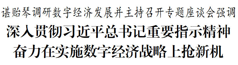 諶貽琴調(diào)研數(shù)字經(jīng)濟并主持召開專題座談會??4月2日,省委書記、省人大常委會主任諶貽琴到貴陽市調(diào)研數(shù)字經(jīng)濟發(fā)展,主持召開專題座談會研究部署相關(guān)工作。她強調(diào),要深入學習貫徹習近平總書記視察貴州重要講話精神