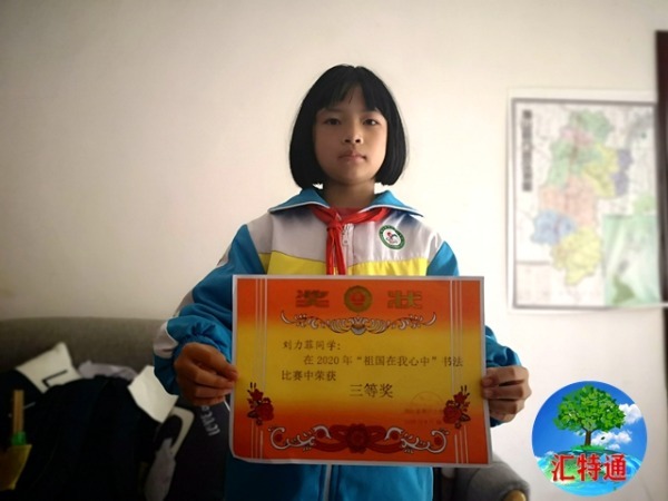 祝賀女兒劉力菲榮獲獨(dú)山縣第三小學(xué)2020年祖國(guó)在我心中書法比賽全校第三等獎(jiǎng)