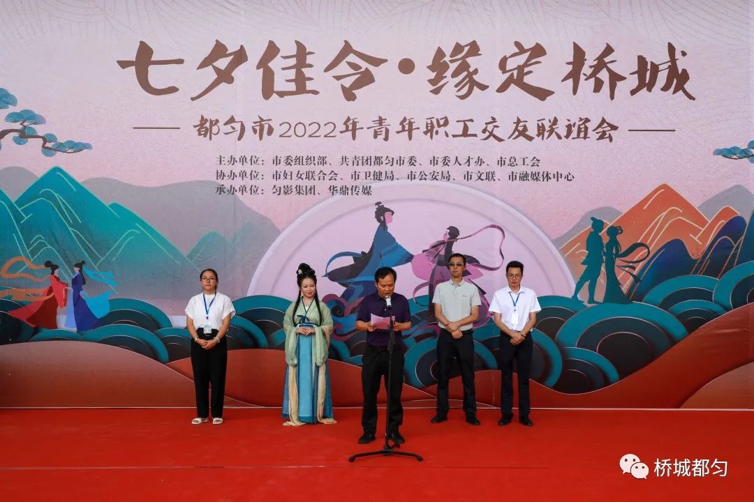 8月4日下午,由黔南州都勻市委組織部、團(tuán)市委、市委人才辦、市總工會主辦,市婦女聯(lián)合會、市衛(wèi)健局、市公安局、市文聯(lián)、市融媒體中心協(xié)辦的“七夕佳令·緣定橋城”青年職工交友聯(lián)誼活動在都勻市秦漢影視城舉行。市
