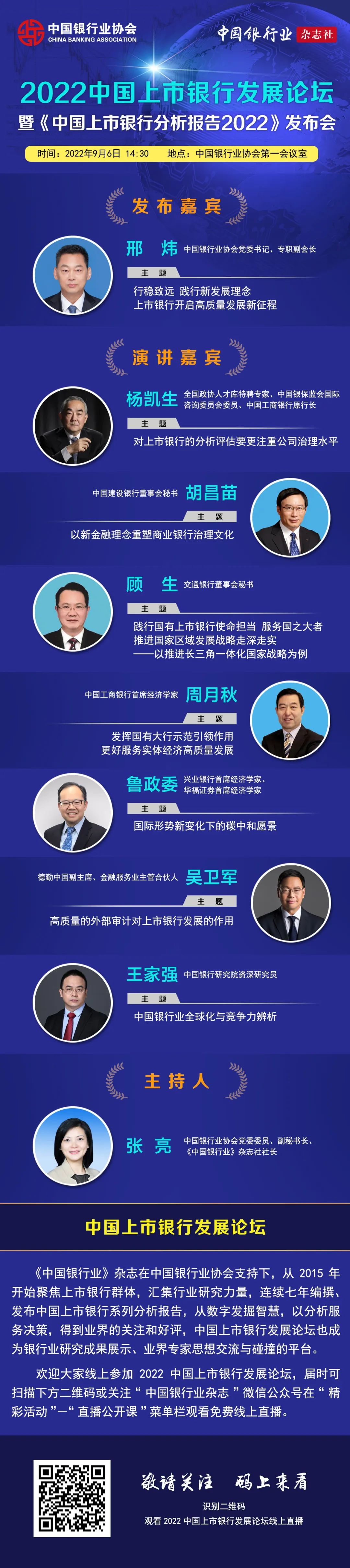 2022中國上市銀行發(fā)展論壇暨《中國上市銀行分析報(bào)告2022》發(fā)布會9月6日在北京召開,中國銀行研究院資深研究員王家強(qiáng)等擔(dān)任發(fā)言嘉賓