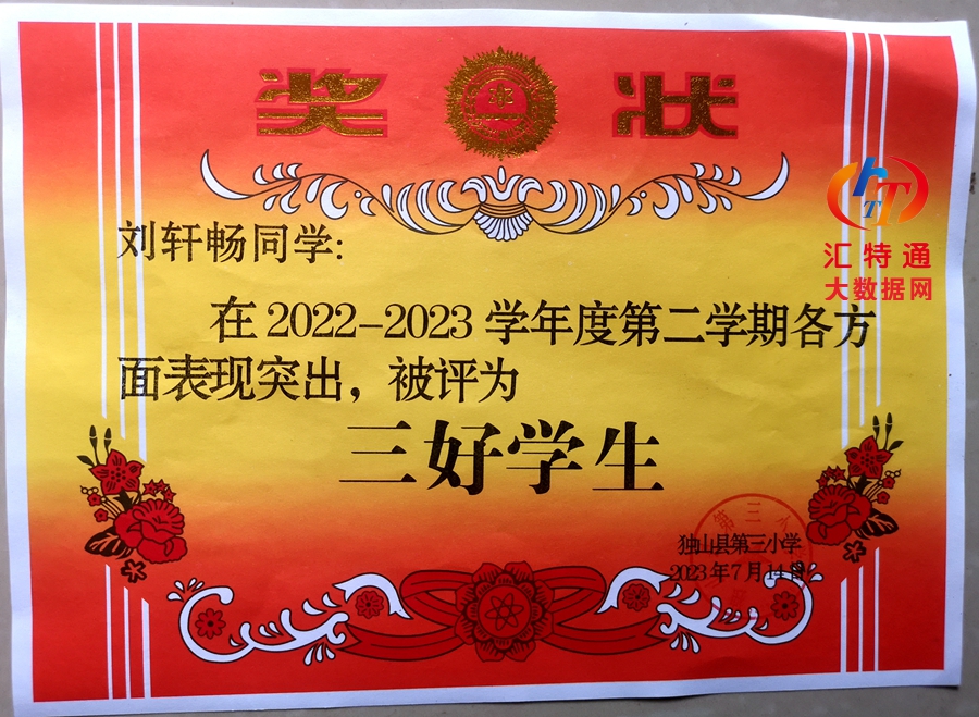 祝賀劉軒暢榮獲貴州省黔南州獨山縣第三小學(xué)2023年2024年五年級組總分第三名和三好學(xué)生劉軒暢榮獲獨山縣第三小學(xué)即獨山縣思源實驗小學(xué)五年級成績總分第三名劉軒暢榮獲五年級組三好學(xué)生,以資鼓勵。