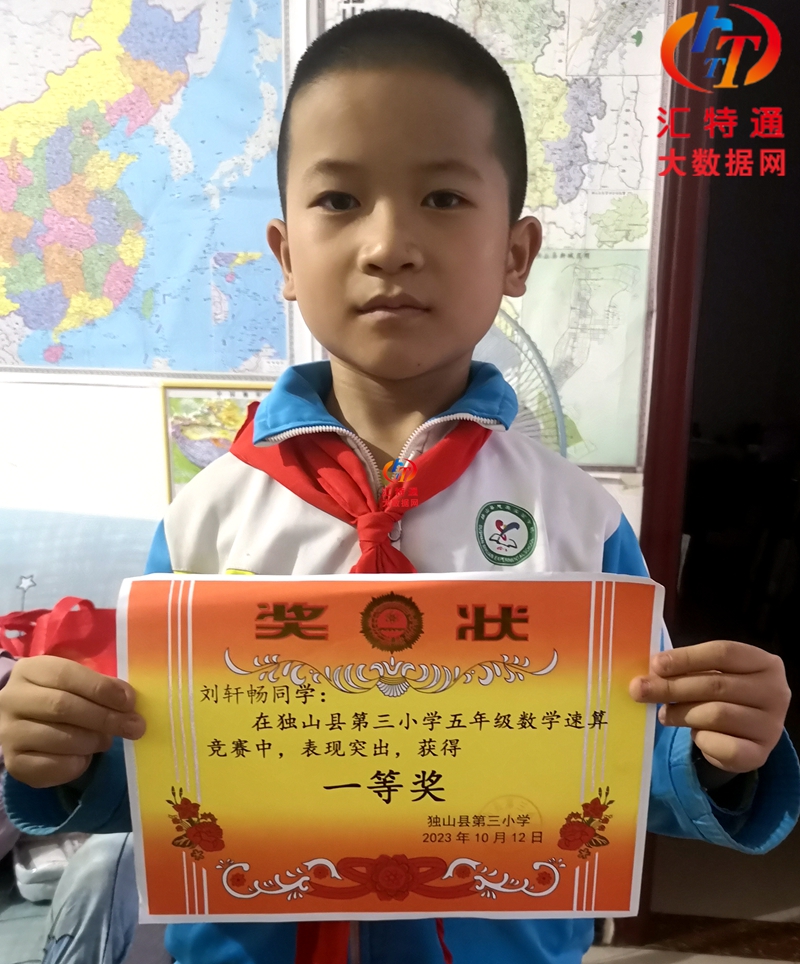 獨山縣第三小學(xué)劉軒暢榮獲2023年數(shù)學(xué)速算競賽五年級組第一等獎 獨山縣第三小學(xué)及獨山縣思源實驗小學(xué)舉行2023年年級數(shù)學(xué)速算比賽,五(4)班劉軒暢榮獲五年級數(shù)學(xué)速算比賽第一等獎。在此表示真誠的祝賀和鼓勵。