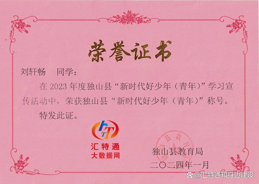 2024年被評選為獨(dú)山縣“新時(shí)代好少年”